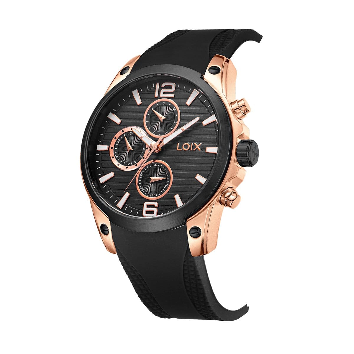Un diseño con pulso deportivo, inspirado en un hombre que ama los detalles diferentes. Cuenta con sub-esferas multifuncionales ubicadas de manera lateral, caja y herrajes completamente en acero. Un Loix ideal para ti.