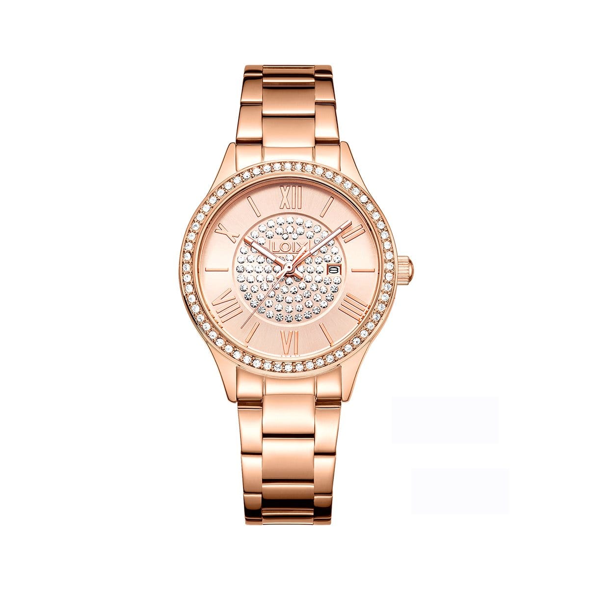 Este reloj es perfecto para una mujer que busca algo fuera de lo común. La combinación de las piedras alrededor del tablero e indicador de la fecha. te convertirán en el centro de todas las miradas