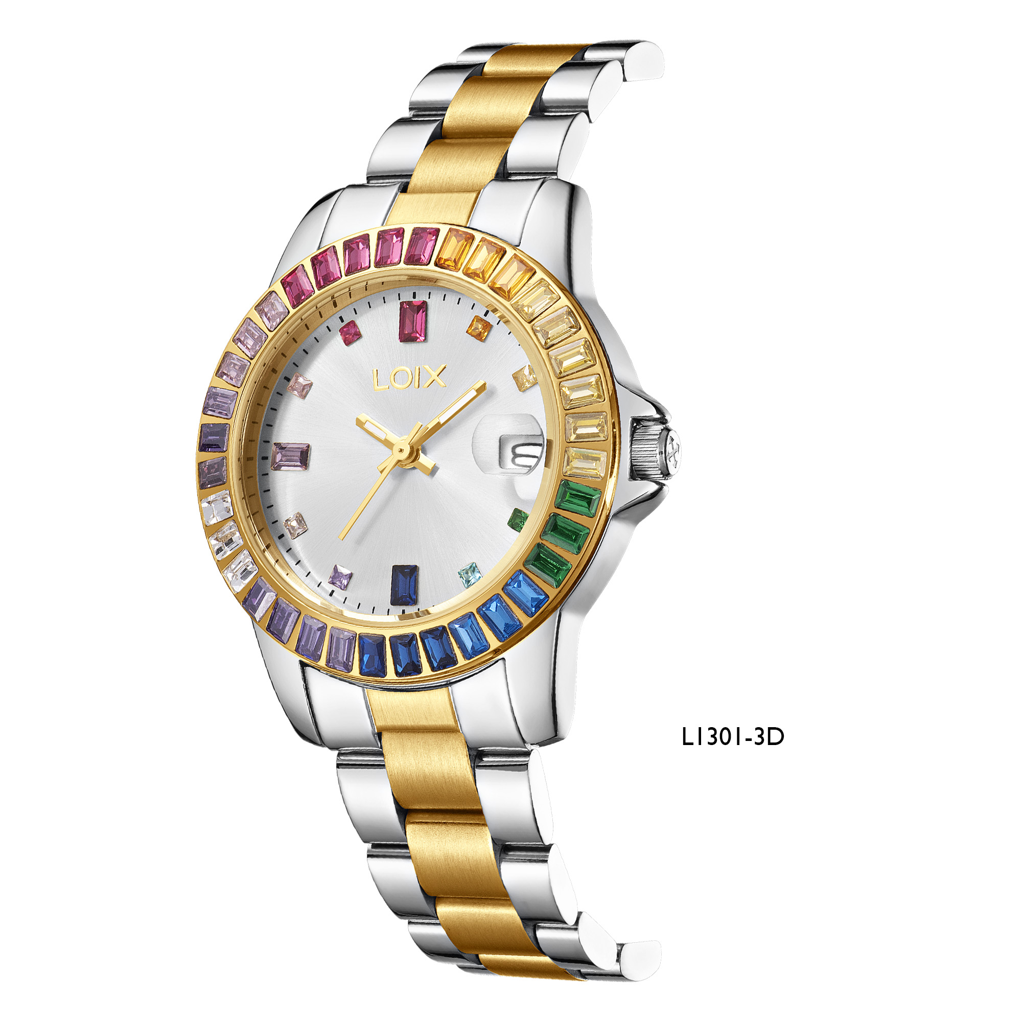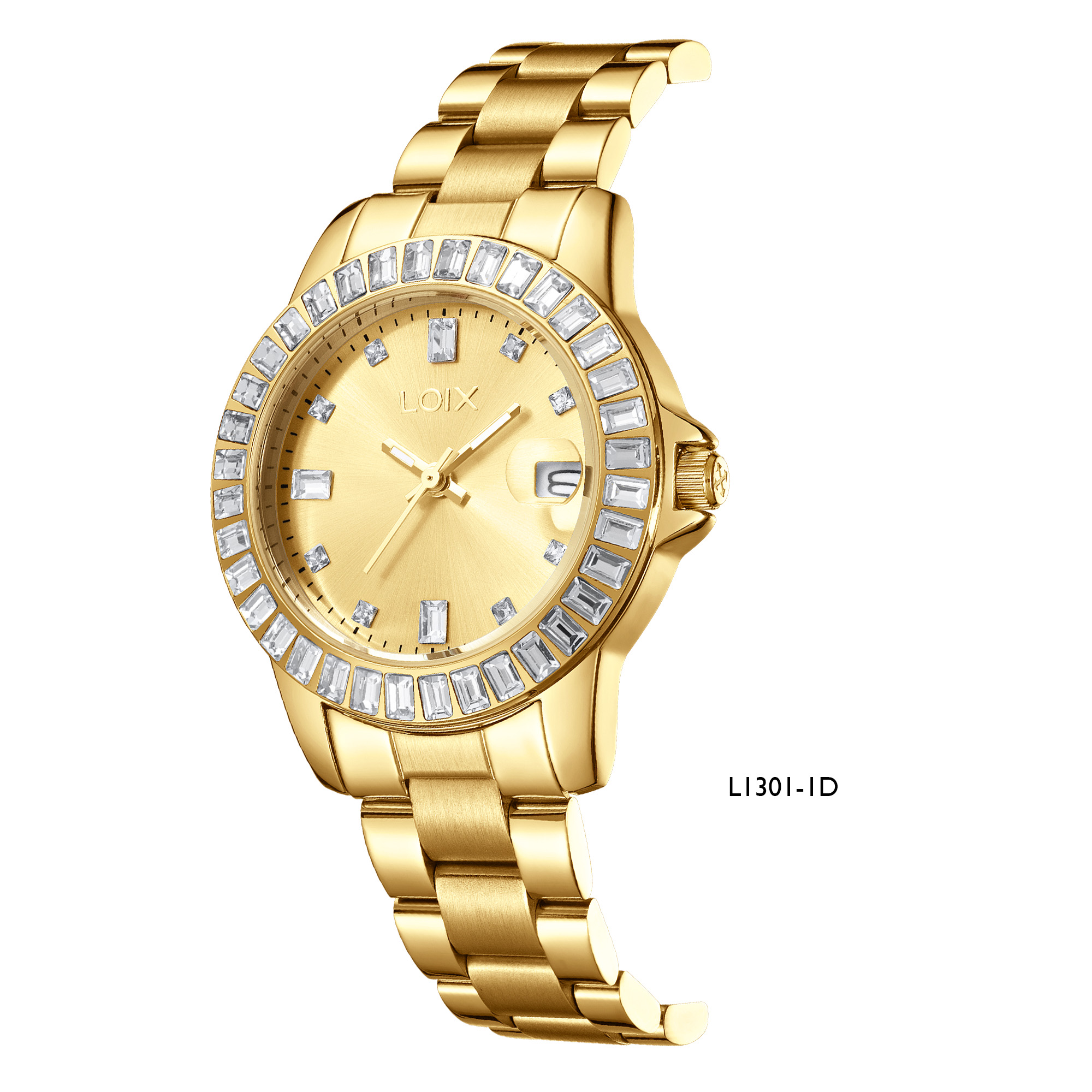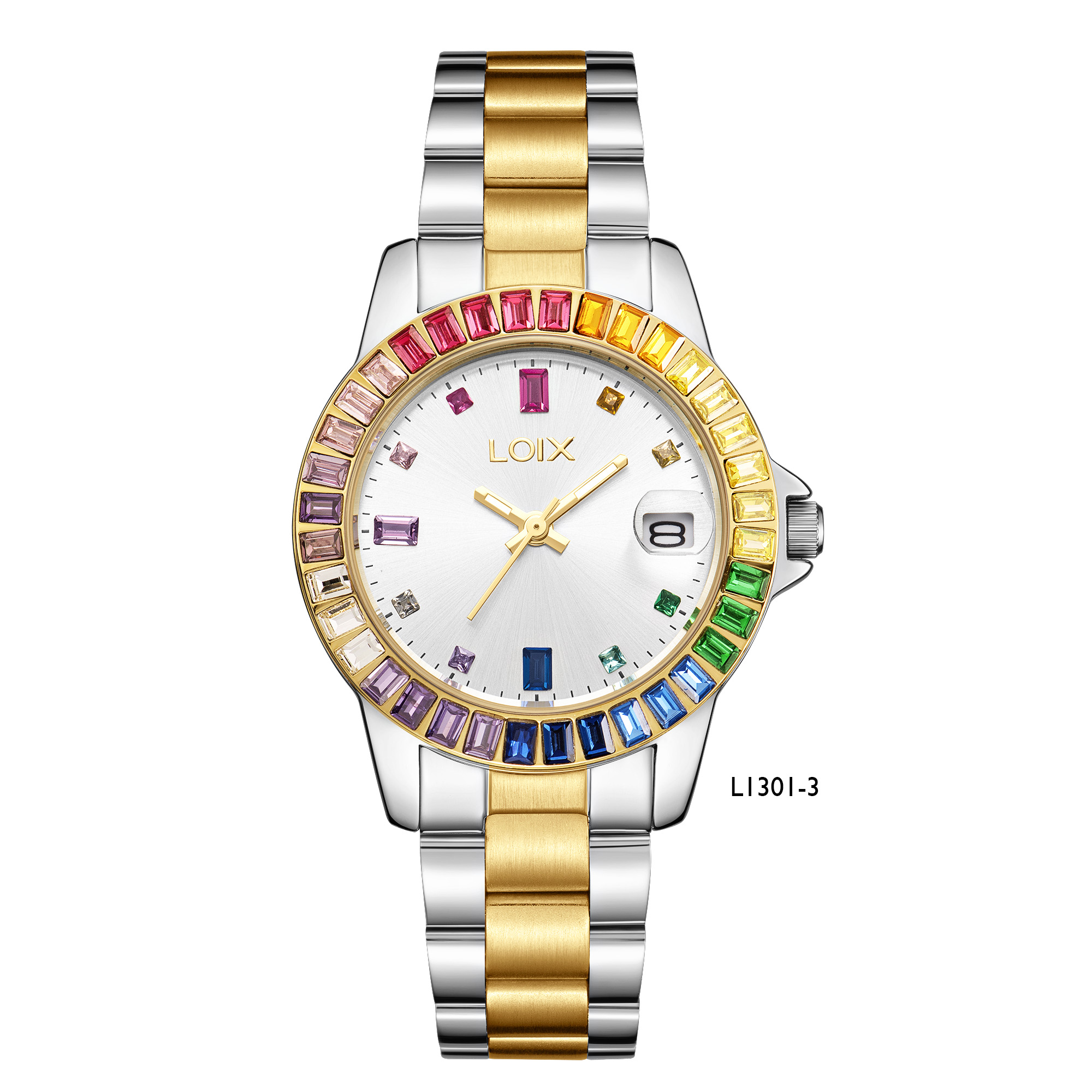Reloj Loix L1301 Para quienes brillan en los detalles y en lo profundo. Este reloj para dama destaca por su cristal mineral, caja de alloy de 34 mm y un cómodo pulso de stainlees steel de 16 mm. El movimiento japonés Miyota 2015 garantiza precisión en cada instante. Diseñado para adaptarse a tu vida, sin importar el momento.